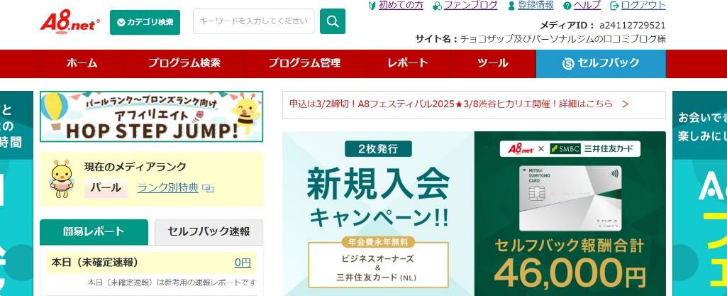 ① A8.netに登録する